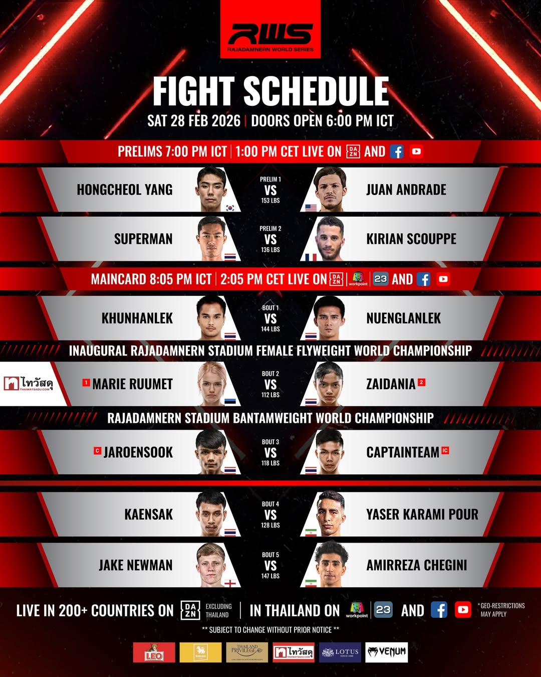 Superman Banchamek vs. Kirian Schouppe | Rajadamnern World Series |2026-02-28