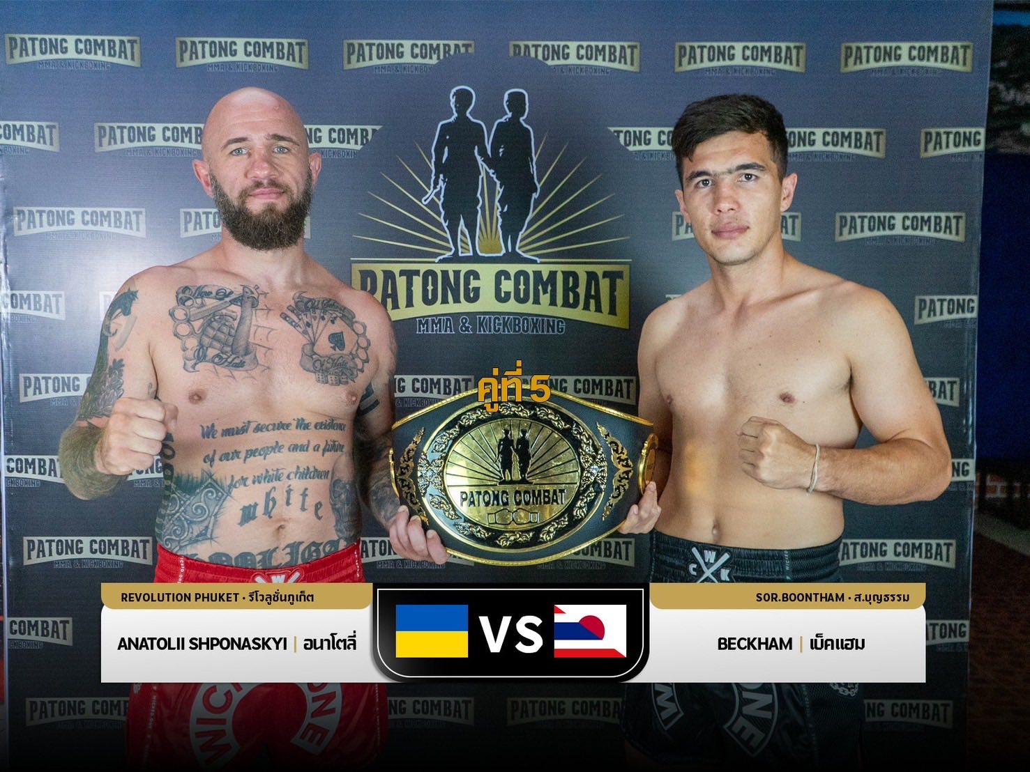 Beckham Sor. Boontham defeated Ukrainian fighter Anatolii Shponaskyi by technical knockout in the third round to win the PATONG COMBAT 169-pound title.